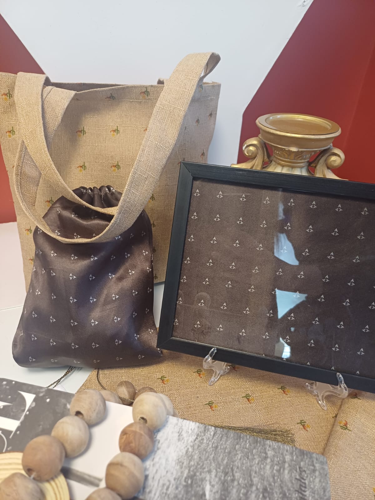 These are the pieces I have created over time, including tie-dye, block printing, and digital printed scarves, along with products developed using the original digital prints I created on Photoshop.